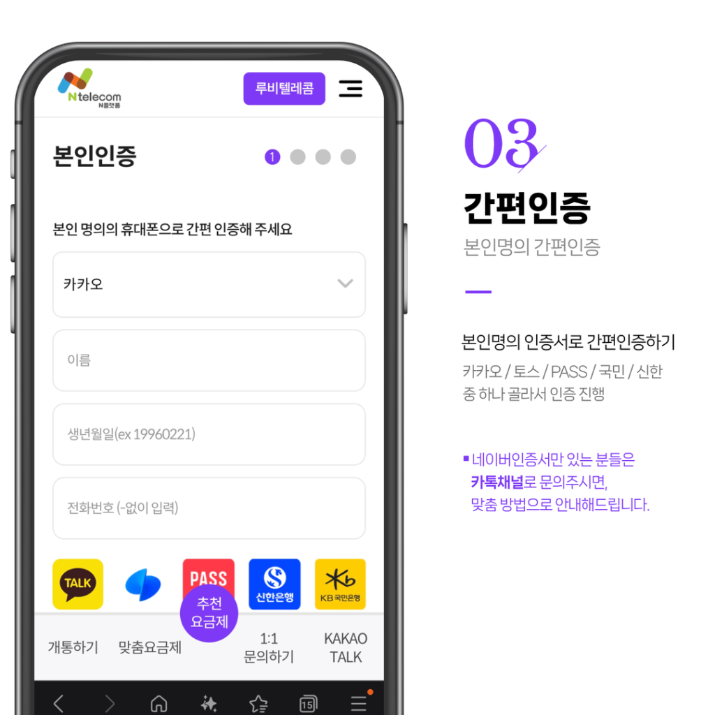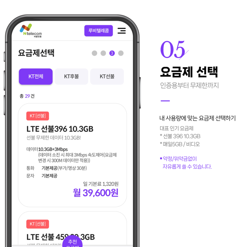공지사항 아이폰 [ESIM] 셀프개통 2026.04.07 공지사항 아이폰 [ESIM] 셀프개통 갤럭시 [ESIM] 셀프개통 셀프개통신청 절차 LG 알뜰폰 사업자 확인 하는 법 (통신사변경) KT 알뜰폰 사업자 확인 하는 법 (통신사변경) 루비텔레콤 루비텔레콤 1 2 3 4 5